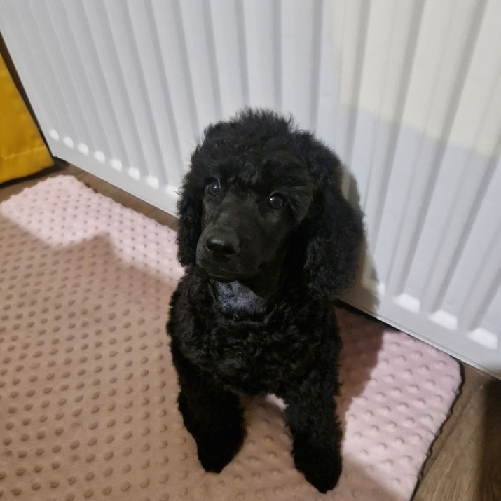 Fiora to czarny Kubuś Puchatek, puszysty miś o małym rozumku i wielkim sercu. Uwielbia smacznie zjeść i dobrze się wyspać. Nie spiskuje za plecami, nie okazuje typowych dla niektórych pudli "fochów". Jak dla typowego misia - jej żywiołem jest las, w którym nabiera ponadpsiej energii i biega, ile tchu w płucach. Fiora jest zawsze radosna i zadowolona, kocha ludzi i wesoło skacze jak piłeczka pomimo swoich solidnych gabarytów. Chętnie przyjaźni się z innymi psami i jeździ samochodem również w dalekie podróże. Nie jest kanapowcem, ceni sobie spokój w swoim legowisku. Jest spokojna i cierpliwa w trakcie groomingu, ale jej zdaniem na wymyślne fryzury szkoda w życiu czasu, a już zaraz po czesaniu włos można wykorzystać do mycia grzbietem podłogi w domu lub znajdowania gałązek i liści w lesie.